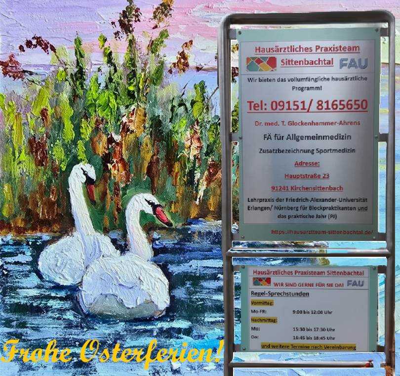 Für uns beginnt ab 07.04.2026 der „Familienteil“ der Osterferien, auf den wir uns sehr freuen. Wir sind am 13.04.2026 wieder für Sie da.