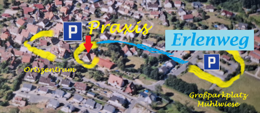 zahlreiche Parkmöglichkeiten an der Praxis und Zufahrt/ Hauptstraße 23